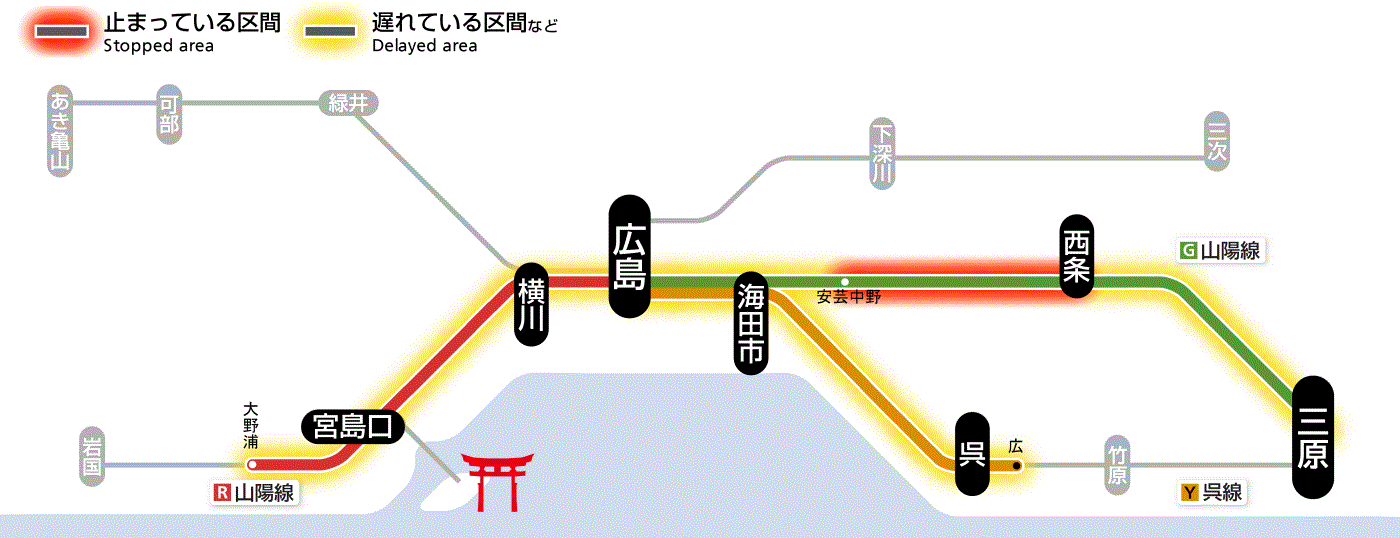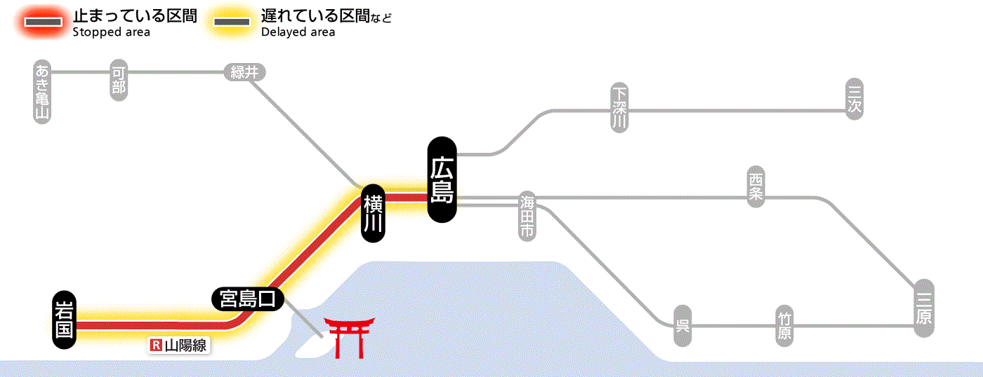 山陽線広島 から 岩国 まで 一部列車遅延